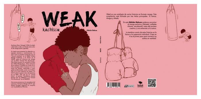 “Weak es una antología de varias historias en formato manga. Esta compilación de mangas está formada por tres títulos principales: Tu fuerza, Amigos y Miedo. En esta edición Deluxe podemos encontrar el manga exclusivo ¡Siéntate!, múltiples 4-koma, storyboards, notas del proceso creativo y una entrevista a la autora. La temática común de estas historias es la fuerza y la superación individual. Creer en ti es el primer paso para convertir tus sueños en realidad. “
